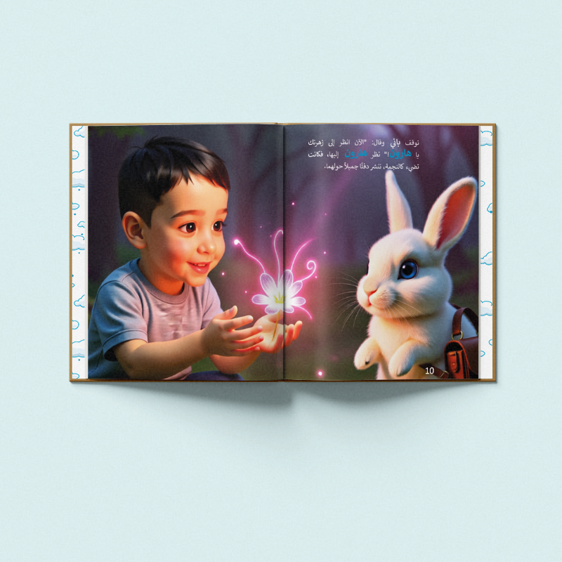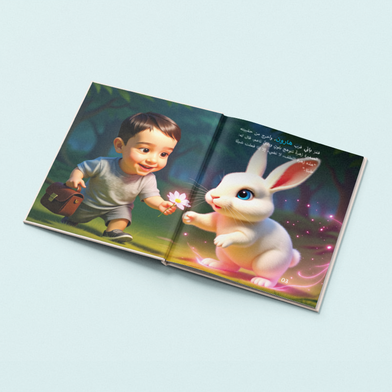 في هذه المغامرة المشوّقة، يعيش طفلك تجربة فريدة يتعلّم فيها الصبر من خلال أحداث ممتعة ومليئة بالتحديات. القصة تُظهر اسمه وصورته في كل صفحة، مما يجعل من هذا الكتاب تجربة شخصية دافئة تنغرس في الذاكرة